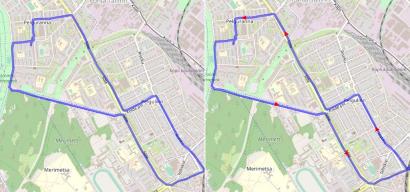 The screenshot below shows the same track, only with and without taking into account the direction of movement. Left - track without direction display Right - with direction display