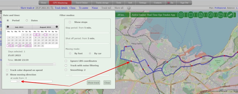 Therefore, we made a lightweight version, in which direction arrows are periodically placed on the track and you can schematically understand how the tracker was moving.
