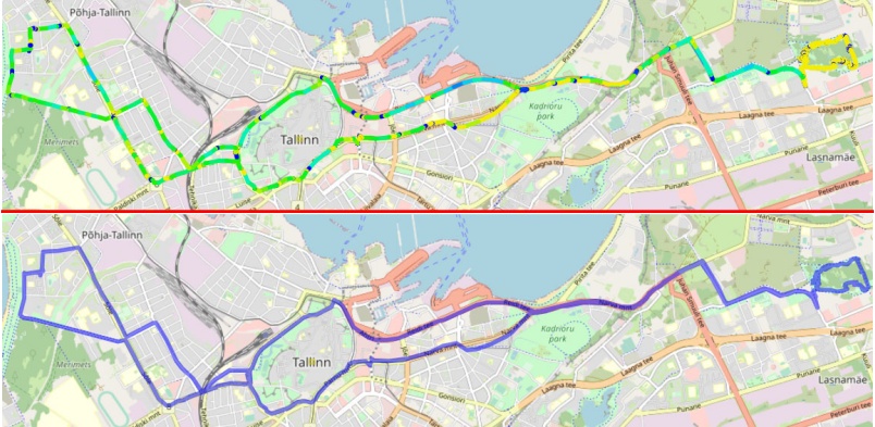 What the same track looks like with and without speed: