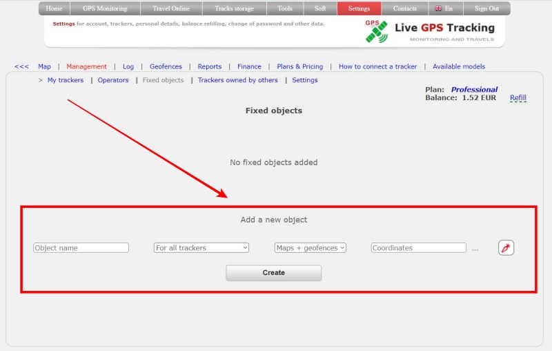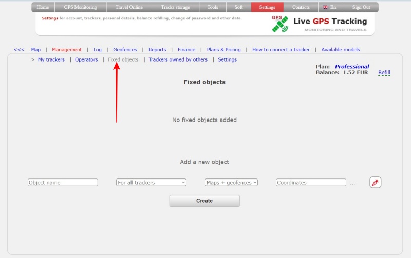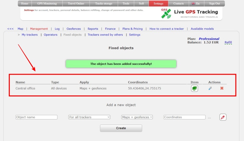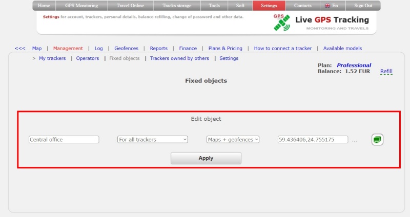 - Maps+geofences - the object will be displayed on the map. It will be possible to create proximity zones on it