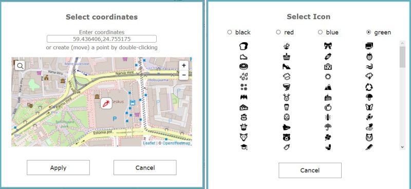 ➔ Coordinates - click on the input field, or on the “…” button located to the right of the field. In the window that appears, mark a point on the map.
