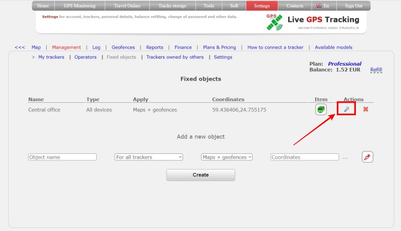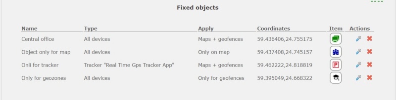 With the help of such objects, it is possible to mark important places, for example, which the tracked trackers should visit, as well as using proximity zones to find out at what time the tracker was near the marked place or approached at the moment.