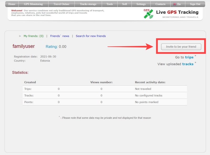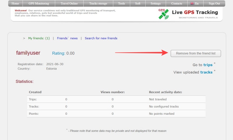 - In the Travel Online section, you will be able to set privacy for your tracks only for your friends.
