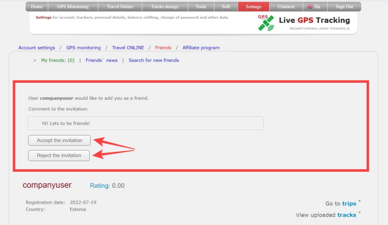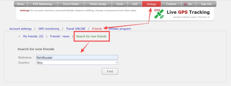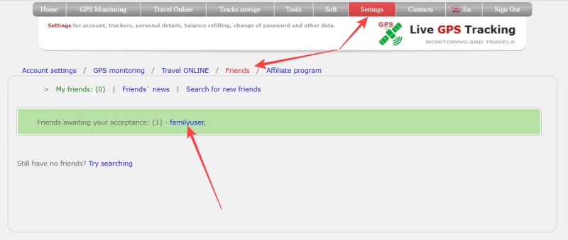 - In the GPS Monitoring section, you can give your friends access to your trackers. Or access to friend's trackers