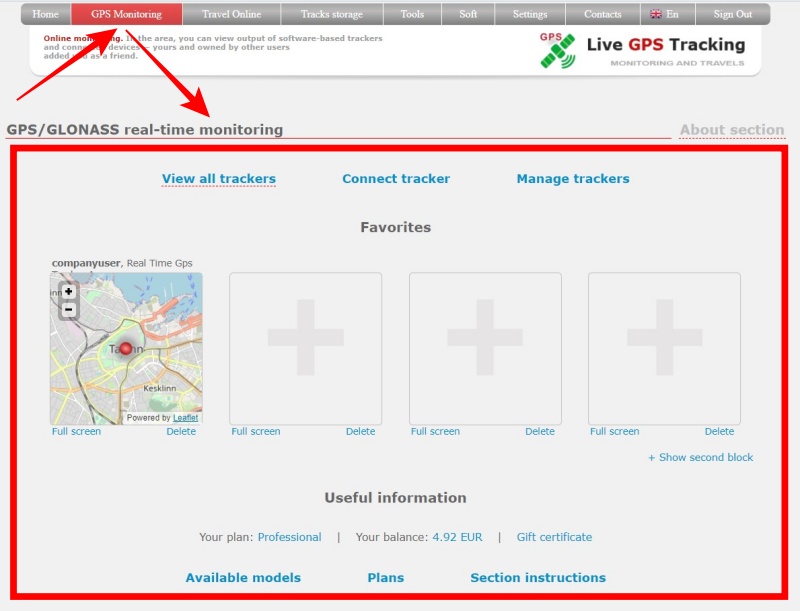 - View all trackers - go to the monitoring map, where all connected trackers are displayed.