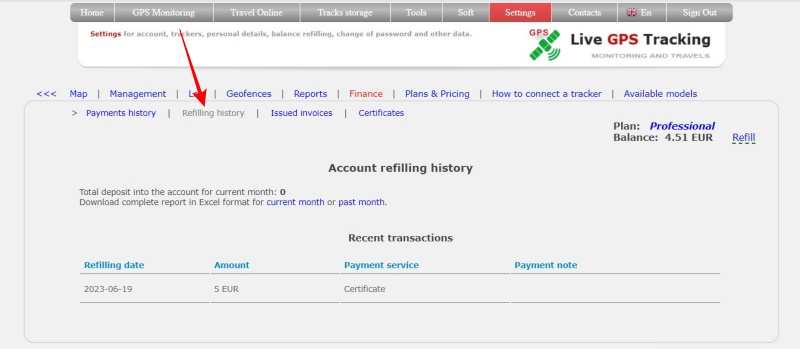 How to look refilling history of balance