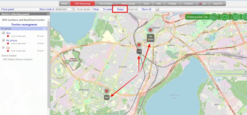 When connecting a tracker, you can give it a name. In the future, the name can be displayed on the map under the tracker icon.