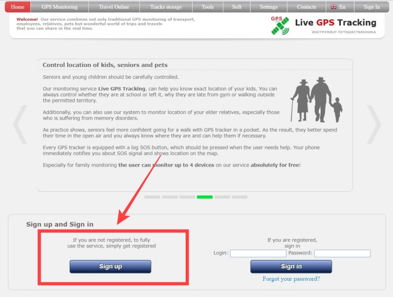 Go to the main page of the service https://livegpstracks.com