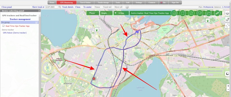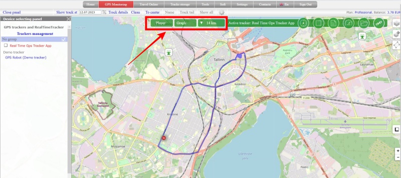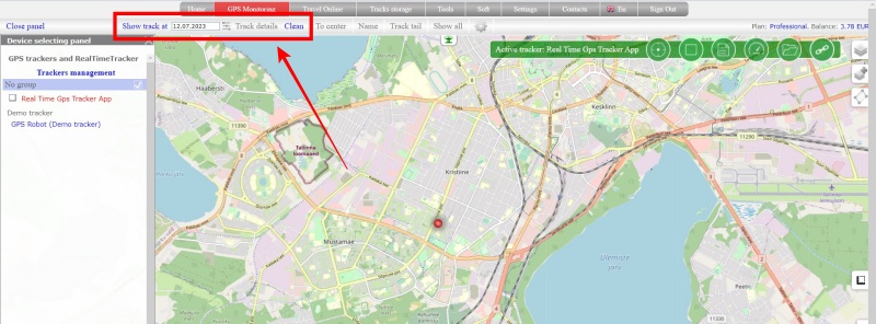 Show track for - when you click on the text, it displays the track for the date set in the next “date selection” field. For example, in the screenshot above, when you click on the text, the track for 12/07/2023 will be displayed