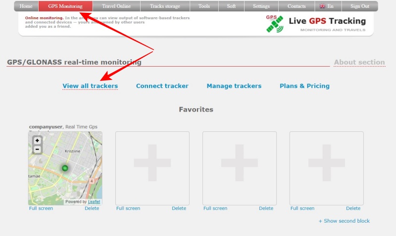 If you turned off information page (dashboard), just click on “GPS Monitoring” and you will on the map page.