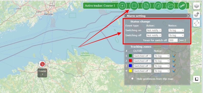 - Setting “Time to turn off” - if no coordinates are received from the tracker within the set time, the tracker will be considered turned off. On the website, the tracker icon will change color to red. If the Shutdown event is activated, you will receive a notification.