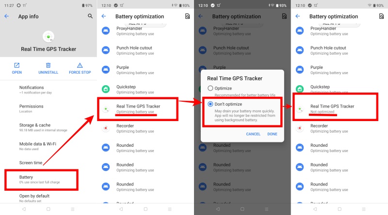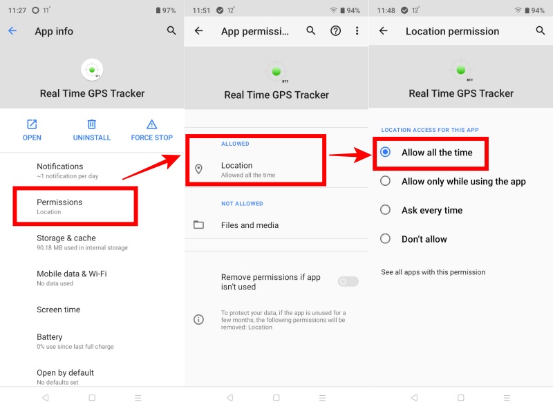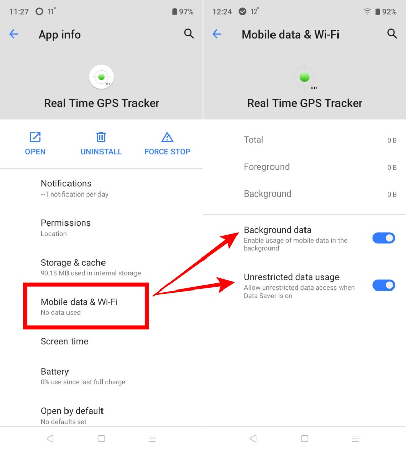 Either System Settings - Applications - “Real Time GPS Tracker” application