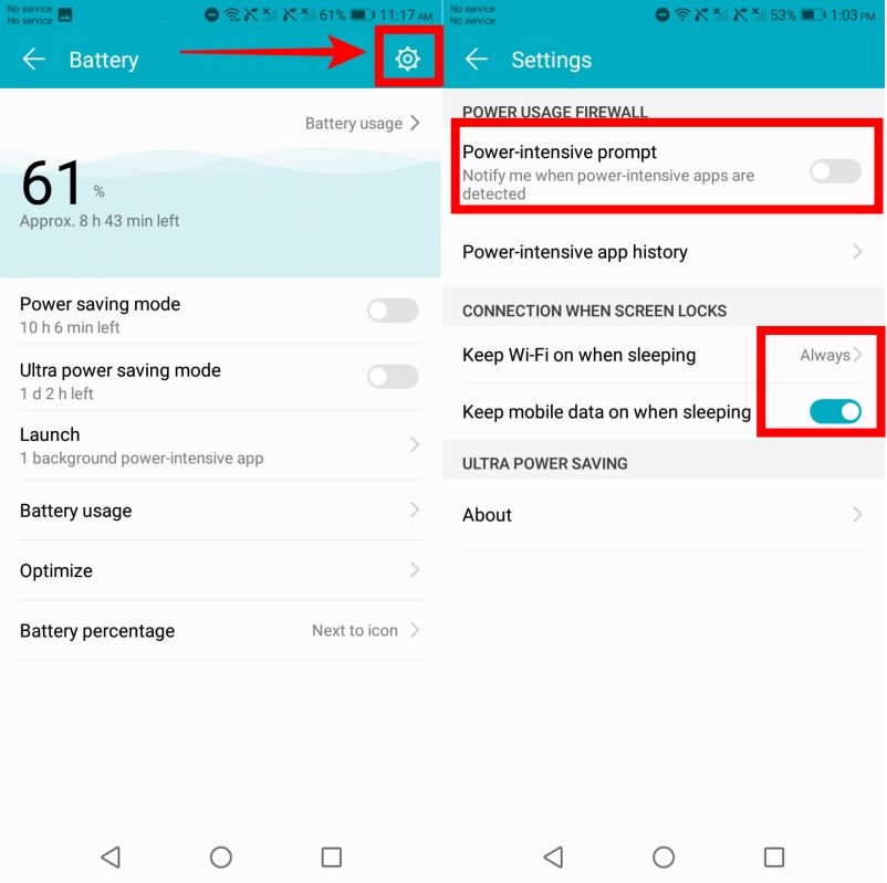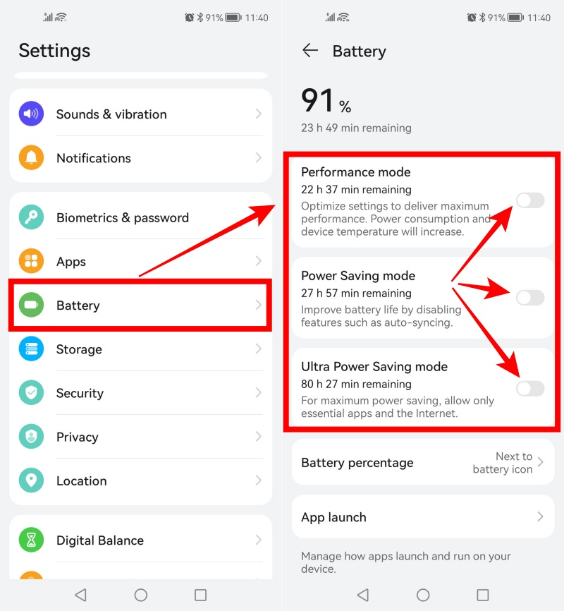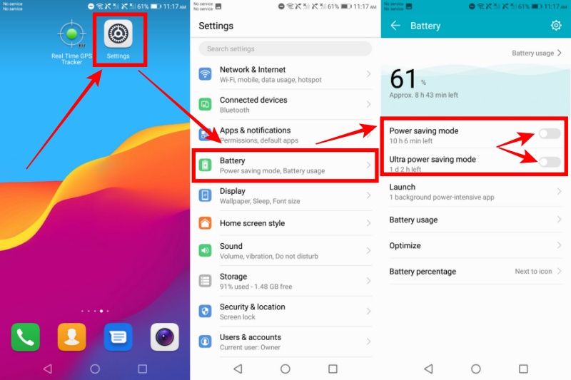 - Android Settings - Battery - The “Power saving mode” and “Ultra power saving mode” modes should be turned off.