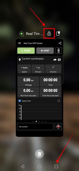 Open the Real Time GPS Tracker application Open multitasking (the button to the right or left of the home button) and look for the “lock” icon next to the application name. Tap on it to make it close. If there is no icon, pull (swipe) the app window down with your finger so that a lock icon appears above it to prevent it from unloading from the background.