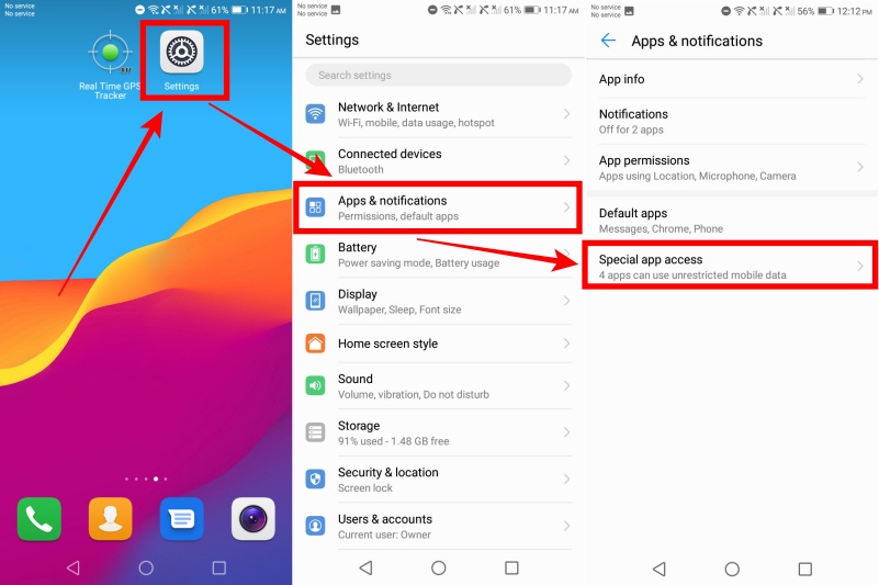 - Apps and Notifications → Apps → Real Time GPS Tracker app info