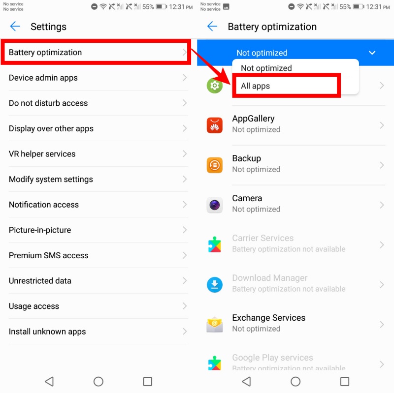 In the special access, select the battery optimization option. It may have different names on different smartphones, such as “Ignore battery optimization”, or “Optimize battery performance”, or “Save battery”, etc.