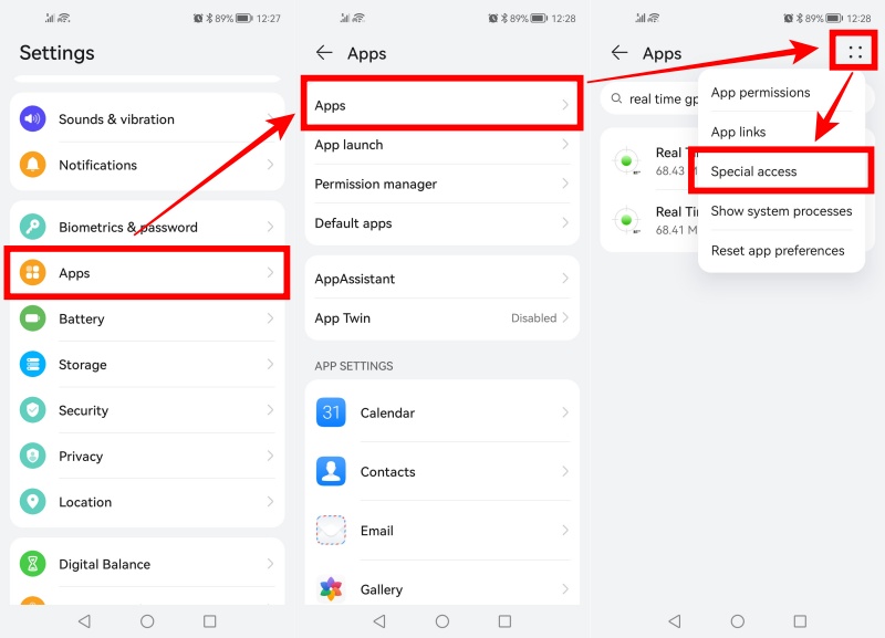 - Android Settings - Apps & Notifications - Apps/App info - Special Access